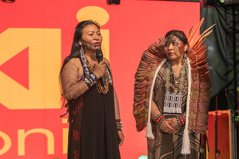 A passarela do Seminário Internacional Txai Amazônia foi palco de um momento marcante de ancestralidade, arte e afirmação cultural. No terceiro dia do evento, realizado no espaço e_Amazônia da Universidade Federal do Acre (UFAC), o público acompanhou o desfile da coleção Yawa Tari, criação das irmãs Nedina e Eliane Yawanawa, que encantou os presentes ao traduzir em moda os saberes e espiritualidades do povo Yawanawa. “Yawa Tari”, que significa “roupa Yawa” na língua Yawanawa, nasceu da vontade de perpetuar os grafismos sagrados e os saberes espirituais do povo por meio da moda contemporânea. As peças são confeccionadas em algodão e pintadas manualmente, trazendo à tona os kenes yawa — desenhos tradicionais antes aplicados sobre a pele e agora transpostos para o tecido. Cada grafismo carrega um significado simbólico e profundo, representando elementos da floresta como a cabeça da jiboia (Runua mapu), a ponta da lança (Paspi), a espinha do peixe tambuatá (Vashu shaka) e a borboleta (Awavena). Transmitidos oralmente entre gerações, esses desenhos expressam a relação espiritual do povo Yawanawa com o território e a natureza. As irmãs criadoras explicam que o projeto une tradição, espiritualidade e protagonismo feminino. Desde a infância, Nedina e Eliane aprenderam os significados dos kenes e transformaram esse conhecimento em arte vestível, que expressa histórias, identidades e resistências. A apresentação integrou a Mostra Artística Cultural do Txai Amazônia, que valorizou as expressões artísticas e culturais dos povos da floresta. O desfile simbolizou o encontro entre o sagrado e o contemporâneo, reafirmando que a moda indígena é também um instrumento de resistência, visibilidade e reconexão com as origens. Foto: Agência Nexo